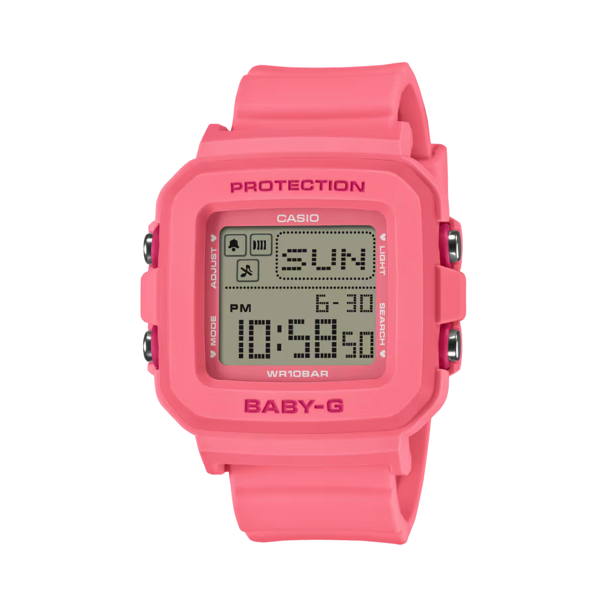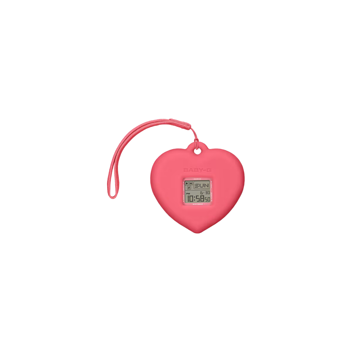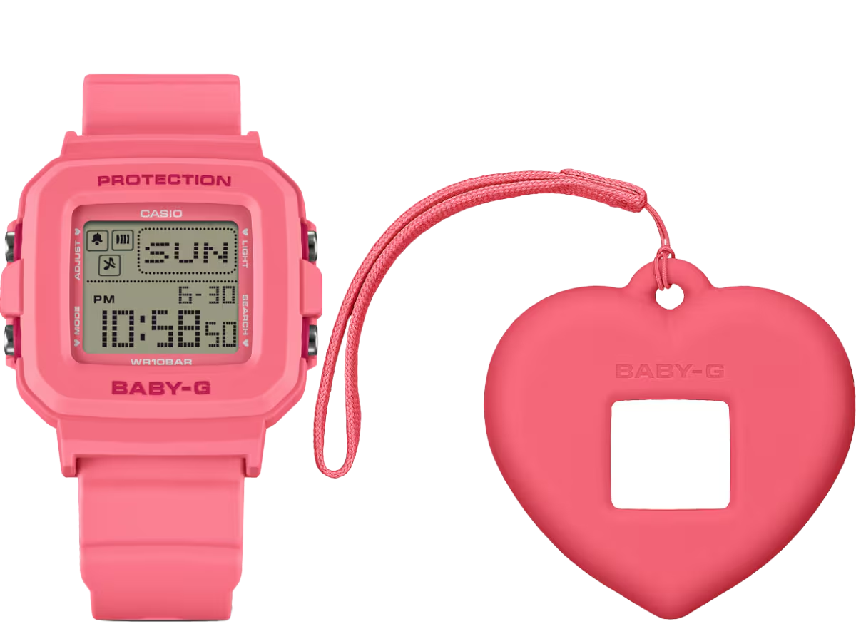 好みに合わせて使い方が楽しめる「BABY-G+PLUS」シリーズから、ハート型の時計ホルダーのポップなモデルです。