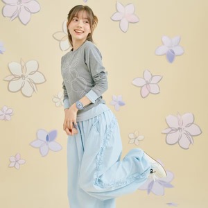 9時位置のクリスタルインデックスが、花の中心を彩るように配置されエレガントな印象を与えています。ベゼルリングには蒸着処理を施し、メタリックの美しい質感です。