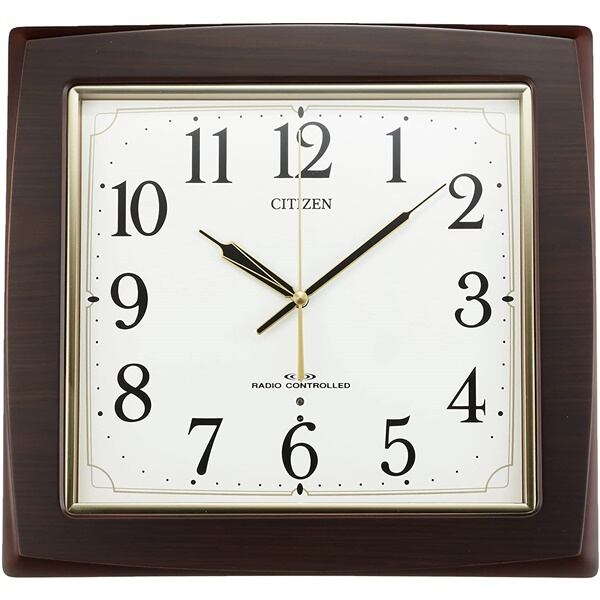 CITIZEN シチズン クロック 電波掛け時計 連続秒針 四角 ブラウン 8MY455-006