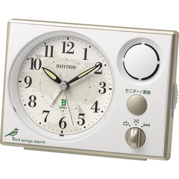 RHYTHM リズム クロック 目覚まし時計 日本野鳥の会 鳥の声 16種 高音質 ライト付 白 8RM401SR03