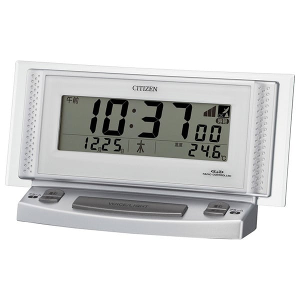 CITIZEN シチズン クロック 電波目覚まし時計 温度表示付 カレンダー付 音声アラーム パルデジットボイスII 8RZ102-019
