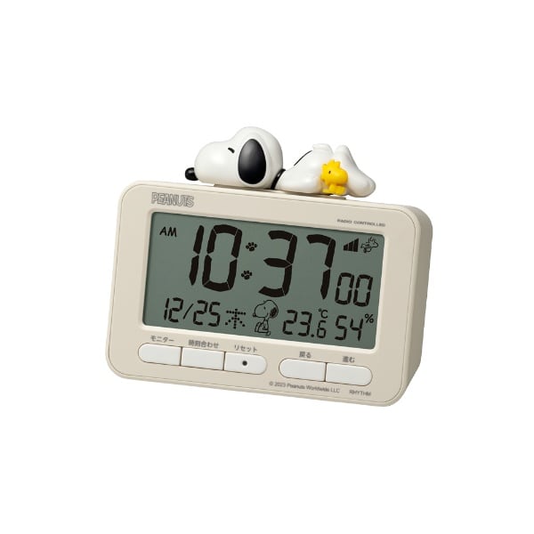 RHYTHM リズム クロック 電波デジタル目ざまし時計 スヌーピー 電子音アラーム ライト付 カレンダー表示 8RZ235MS38