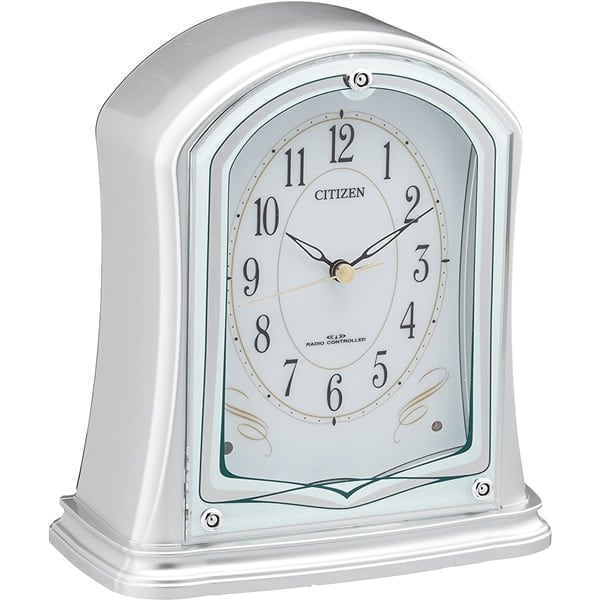 CITIZEN シチズン クロック 電波置き時計 夜眠る秒針 シルバーメタリック 4RY694-019