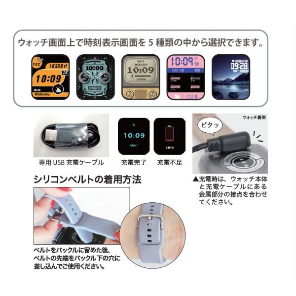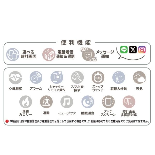 J-AXIS スマートウォッチ 液状タッチ 多機能 アラーム 心拍測定 電話着信 アプリ連携 グレー CS4A0001-GY