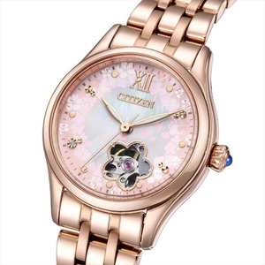 メカニカルウオッチならではの動きが楽しめるオープンハート仕様。桜の花の形に切り取られた開口部がアクセントになった特別感のあるデザインに仕上げました。