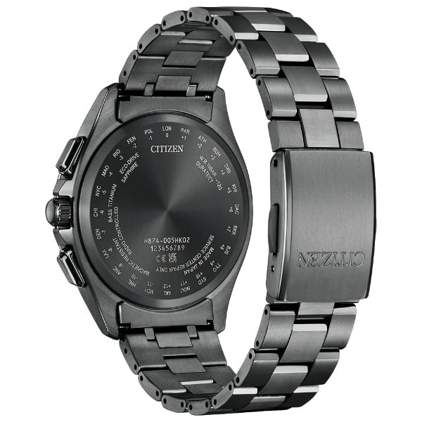 デザイン特徴 文字板部品:再生素材 夜光 フィットアジャスター 裏ぶたに都市表示を刻印