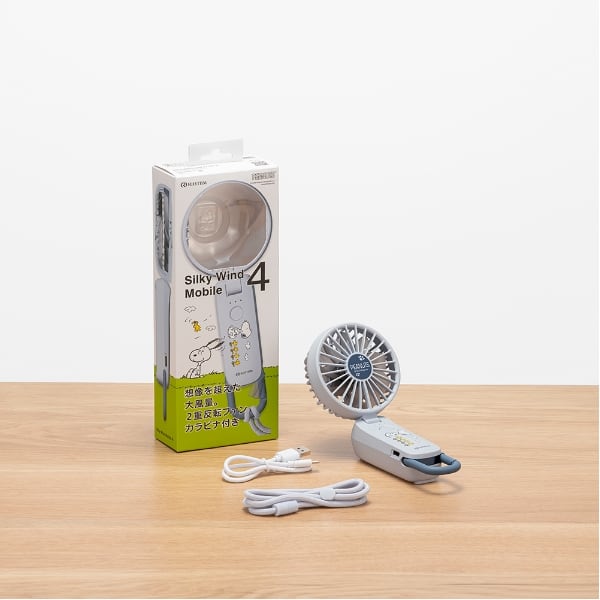 RHYTHM リズム 携帯扇風機 モバイルファン Silky Wind Mobile 4 スヌーピー 大風量 5段階 カラビナ付 ブルー 9ZF042MS04