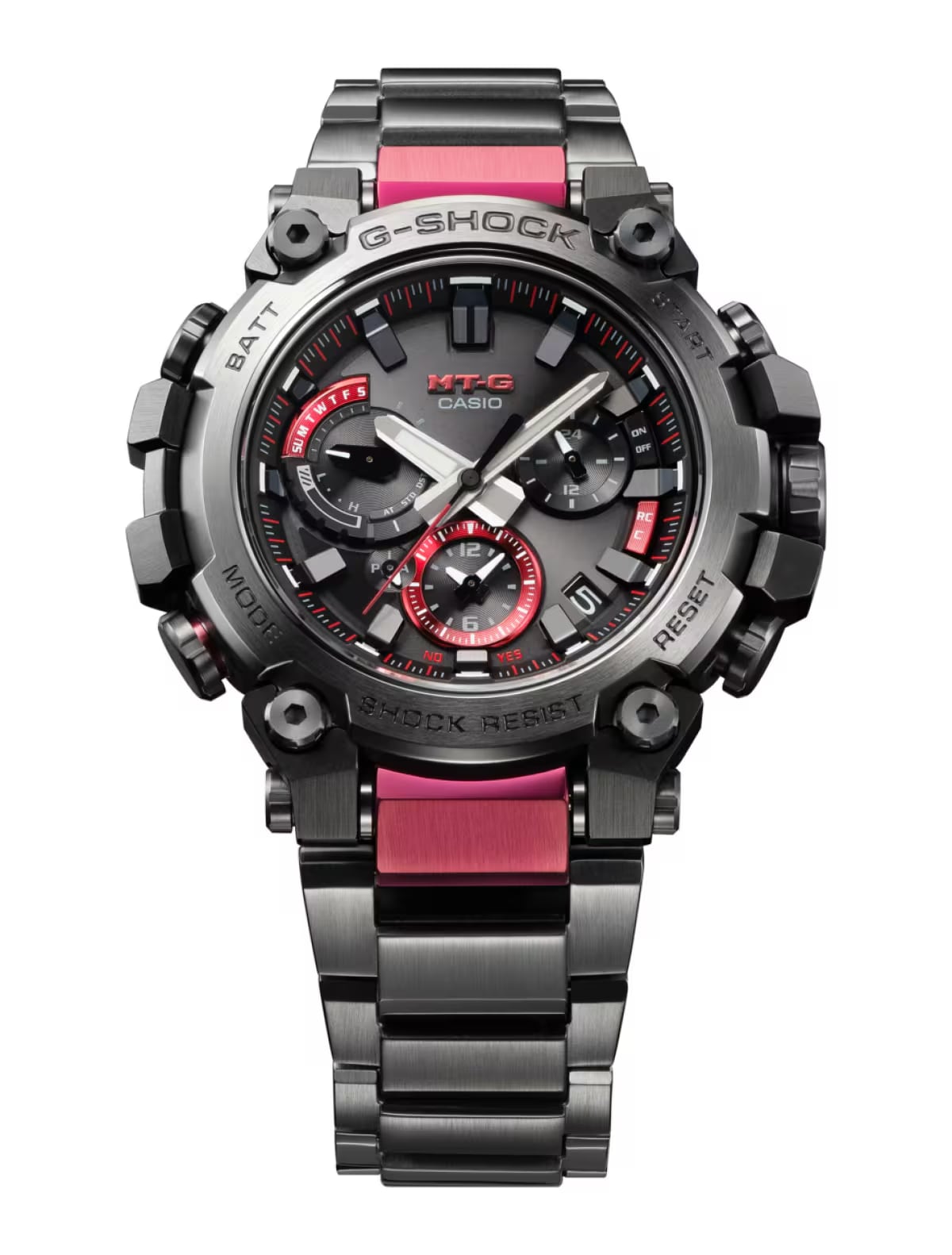 独自の設計思想により、メタル素材とG-SHOCKの起源である樹脂素材を融合して革新的な構造美を追求するMT-Gシリーズ。