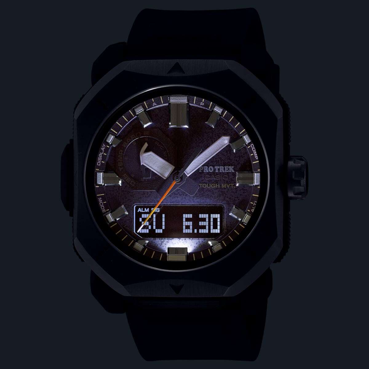 自然を愛する人の本格アウトドアギアPRO TREKから、環境に配慮されたエコ素材を採用した電波ソーラー搭載のモデルです。