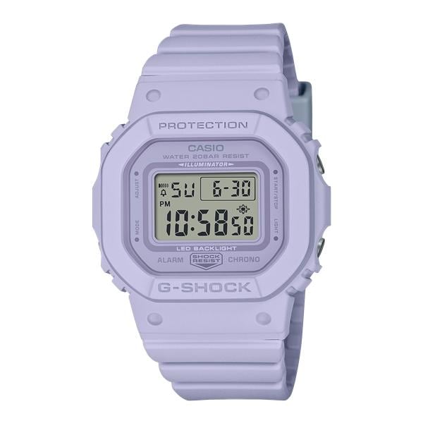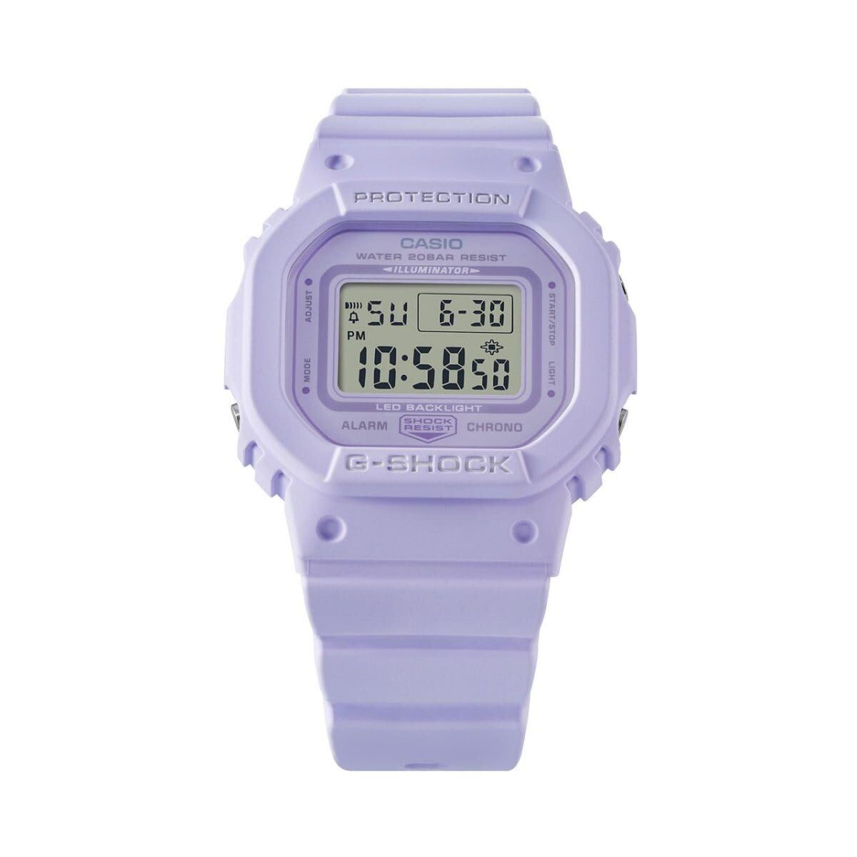 G-SHOCKのアイコンモデルであるDW-5600を小型化・薄型化したモデルです。ワントーンのカラーで全体を仕上げ、ファッショントレンドを押さえた、カジュアルでスタイリングしやすいモデルです。