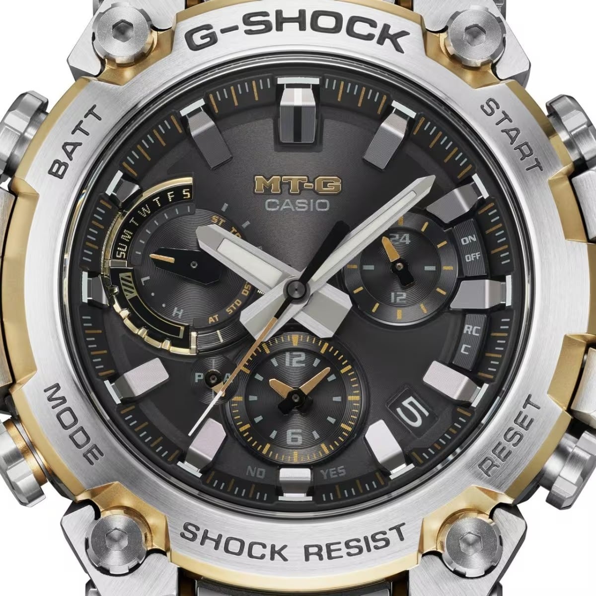 独自の設計思想により、メタル素材とG-SHOCKの起源である樹脂素材を融合して革新的な構造美を追求するMT-Gシリーズ。