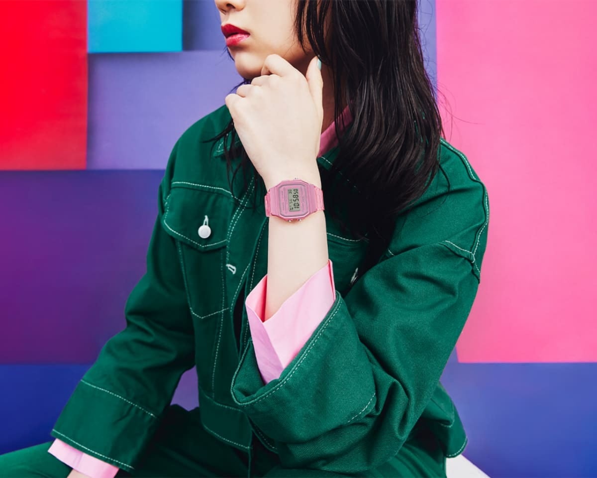国内正規品 CASIO Collection カシオ コレクション POP 軽量 薄型 スケルトン ピンク ユニセックス腕時計 F-91WS-4JH