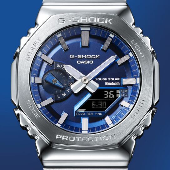 1983年の誕生以来タフネスを追求するG-SHOCKから、ダイアルに鮮やかなブルーを採用したフルメタルシリーズです。